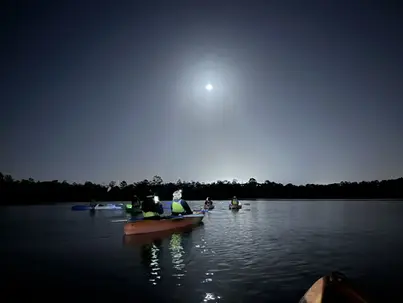Paddlers gaze at the night sky during the Lake Claire Moonlight Paddle on Tuesday.