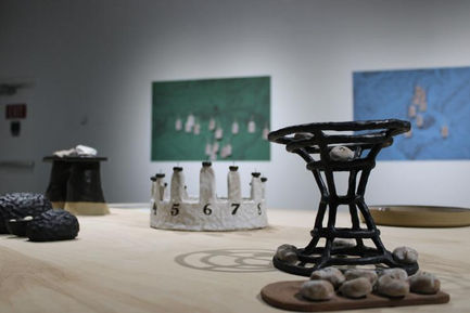 Art made by Amanda Leigh Evans for the "Deep Futures: Sites of Toxic Land Use" exhibition in the UCF Art Gallery on Thursday. Demonstrating the concept of deep time, made from materials found in Superfund sites.